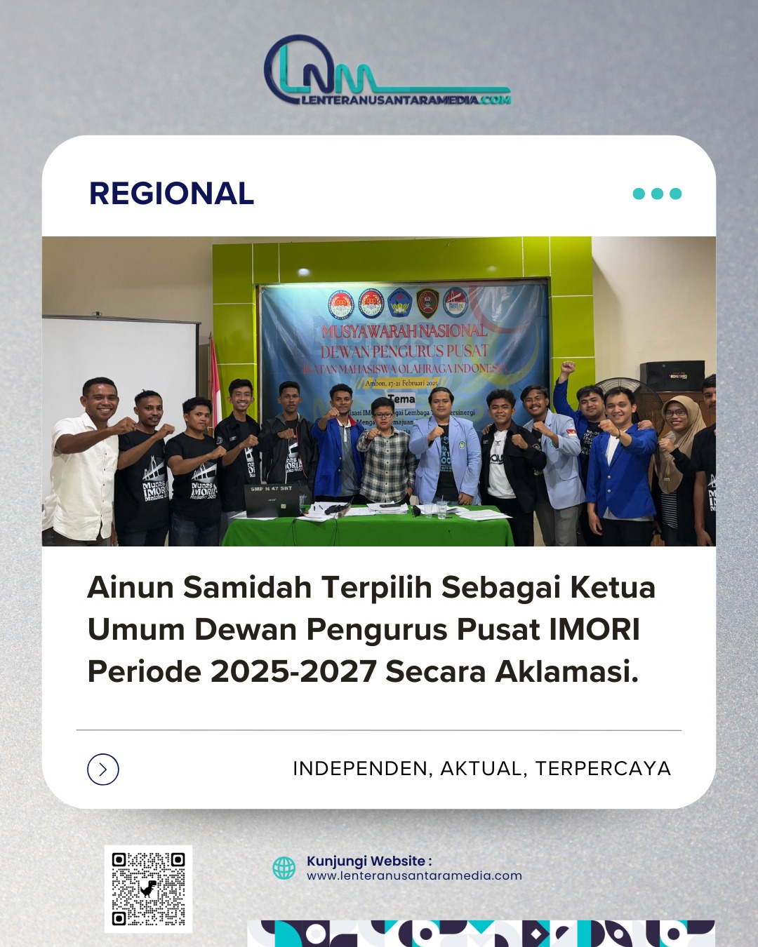Ambon lenteranusantaramedia.com –Ikatan Mahasiswa Olahraga Indonesia (IMORI) menyelenggarakan Musyawarah Nasional ke IX (MUNAS IMORI IX) yang digelar di Universitas Pattimura Ambon Maluku, Minggu/16/02/2025.