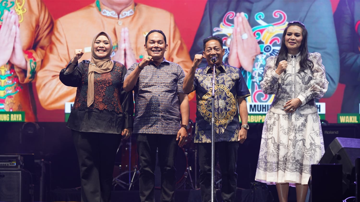 Sebelum menyaksikan penampilan para artis tersebut, Bupati Mura Heriyus didampingi Istri dan Wakil Bupati Mura Rahmanto Muhidin yang juga didampingi istri memberikan sambutan yang berkaitan dengan harapan dan pesan untuk masyarakat di Kabupaten Murung Raya.