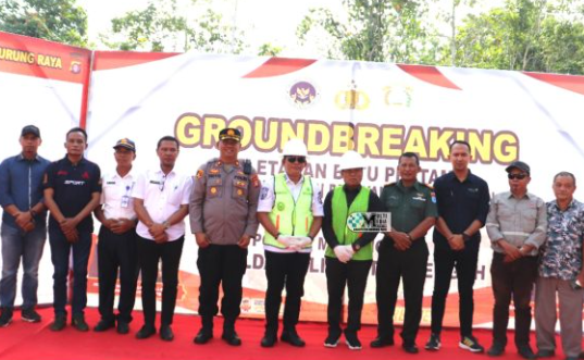 PURUK CAHU – Bupati Murung Raya, Heriyus melalui Wakil Bupati Murung Raya (Mura), Rahmanto Muhidin, didampingi unsur Forum Koordinasi Pimpinan Daerah (Forkopimda), secara resmi meletakkan batu pertama pembangunan Dapur Satuan Pelayanan Pemenuhan Gizi (SPPG) Polres Murung Raya yang berlokasi di Jalan Bhayangkara Km. 12, Desa Danau Usung, Kecamatan Murung, Rabu (6/8/2025).